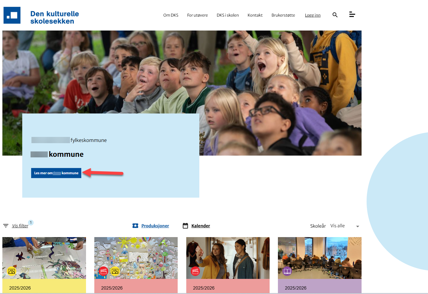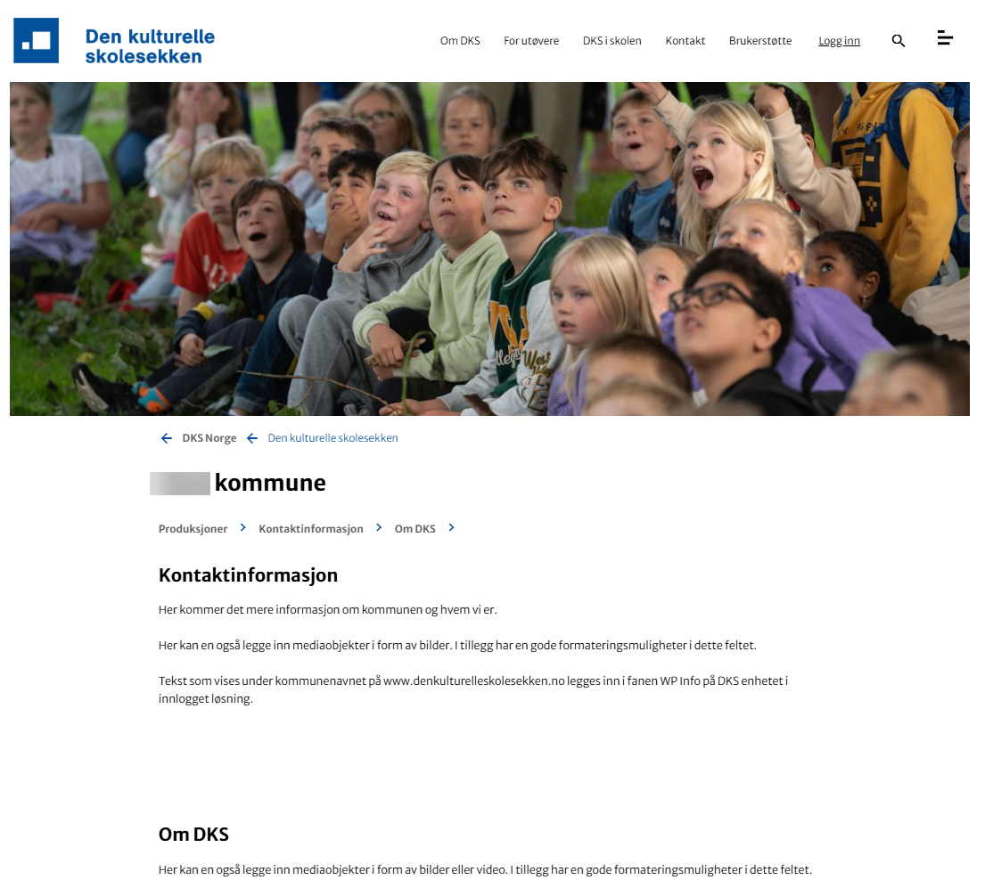 • Kommunens egen side blir tilgjengelig via «Utforsk våre produksjoner» på https://www.denkulturelleskolesekken.no/ .